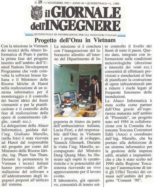 Nell'ambito di questo progetto, nell'Aprile 1992, si è recato ad Hanoi per coordinare l'installazione, la messa a punto e la formazione del personale di un laboratorio informatico inaugurato alla presenza dell'ambasciatrice italiana, Lucia Fiori, del Ministro Dang Quang Mao e del responsabile dell'ONU in Viet Nam per i progetti di sviluppo, Yannick Glemark.
